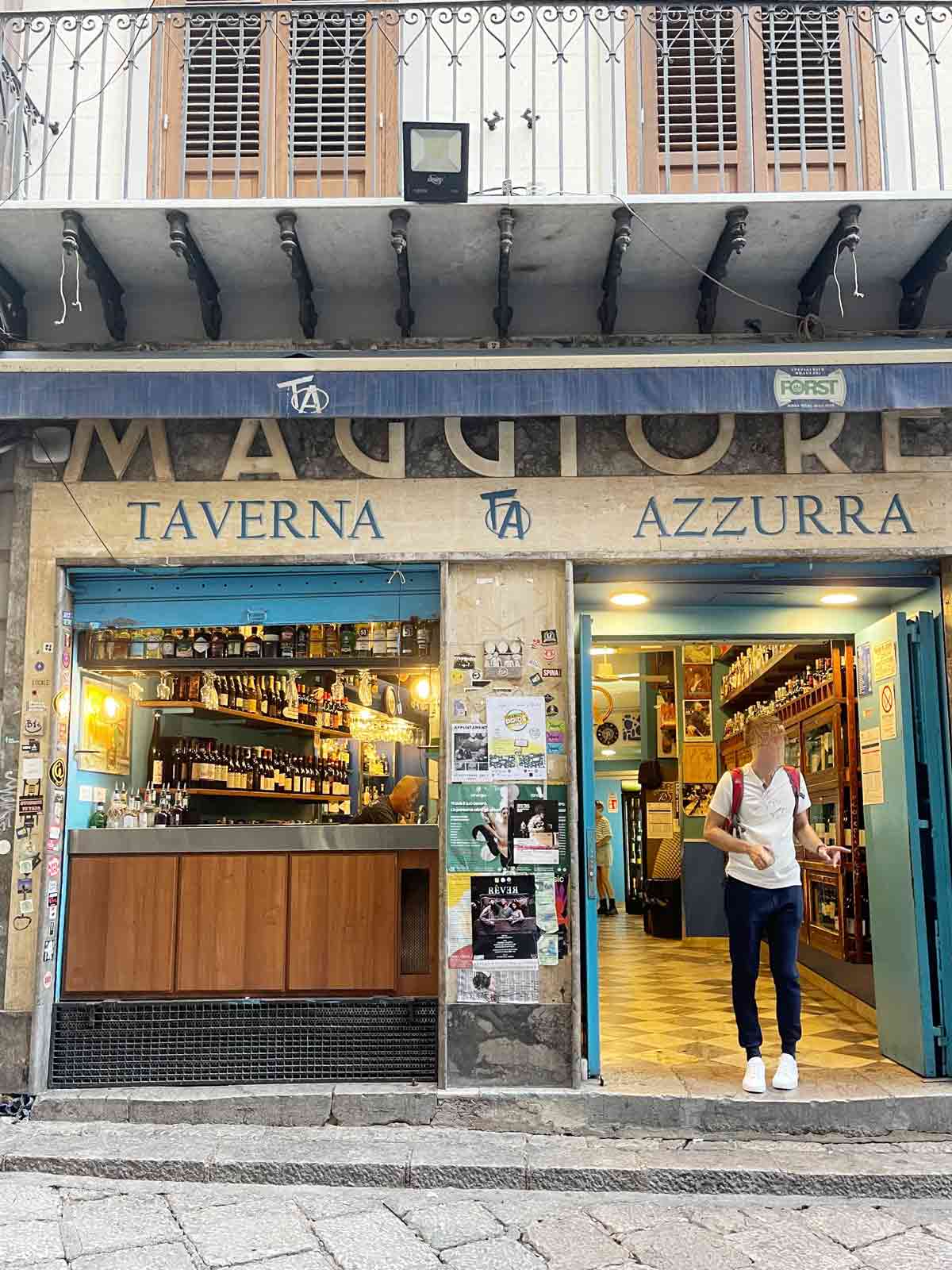 Am Nachmittag ist es dort noch ruhig, abends dagegen ist viel los, besonders in der Taverna Azzurra, einer richtigen Nachbarschaftsbar, die einfache offene lokale Weine anbietet, aber auch anspruchsvollere Flaschenweine.