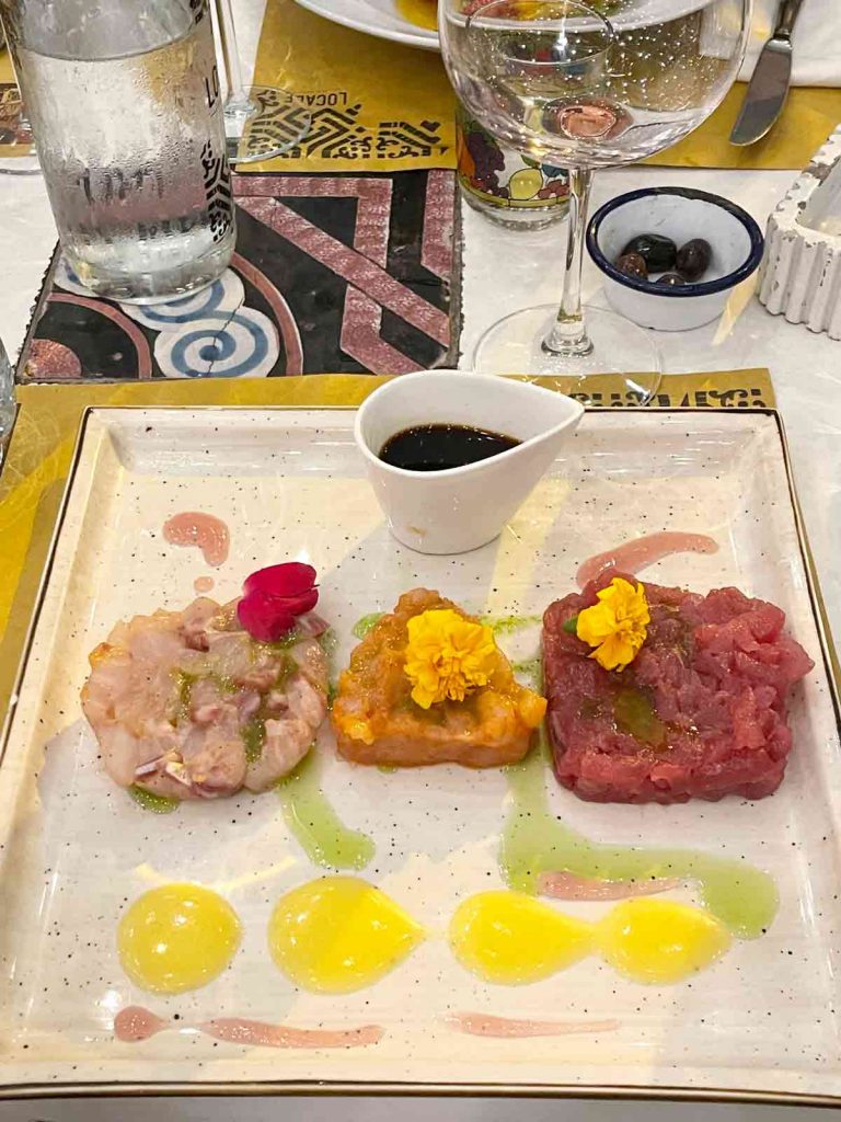 Ein Spumante muss sein! Wir wählen „Cusumano“ – Spumante Metodo Classico Brut. Er besteht aus 50% Pinot Nero, 50% Chardonnay und wird die Begleitung zu meinem Fischtatar aus Tunfisch, Weissfisch und Garnelen. Ein frischer Spumante, die Reben wachsen auf 700 Meter Höhe, was sich im Namen ausdrückt Aromen von weißen Blüten aber auch von Waldbeeren und Brotkruste. Der perfekte Abschluss des Abends!
